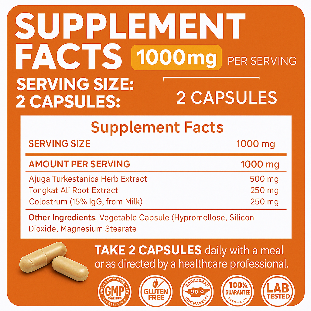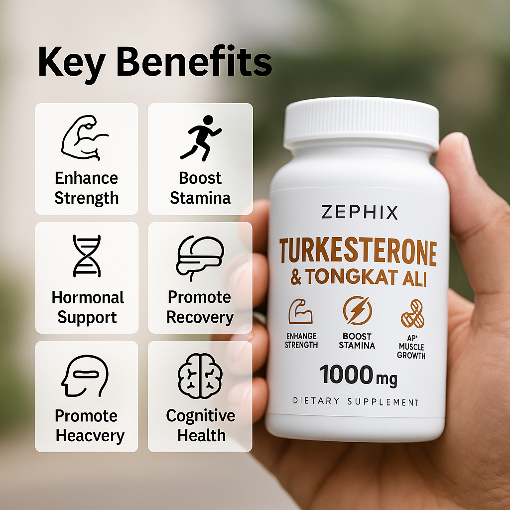 Tongkat Ali is a natural herb traditionally used to enhance testosterone levels, boost energy, improve libido, and support stress reduction, making it a powerful complement to Turkesterone for performance and recovery.