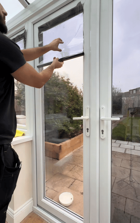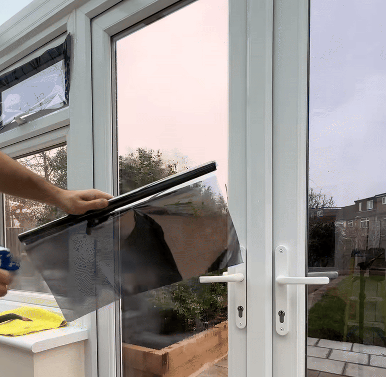 - Cut the film at the bottom edge of the window frame using a sharp blade or scissors